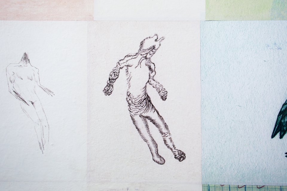 Digestive Tracts of Medieval Female Mystics, 2015, lime casein, natural earth pigments on wood panel